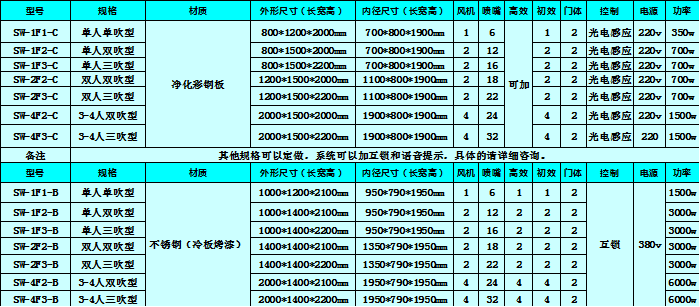 风淋室配置说明: